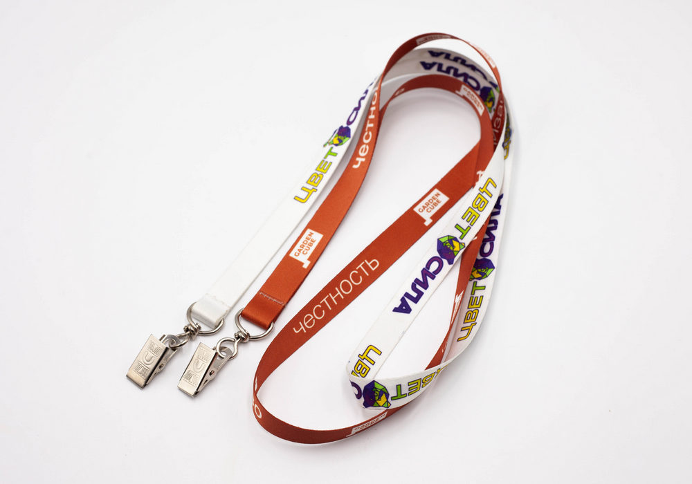 У нас также можно заказать ленты для бейджа с двумя карабинами с одно- и двухсторонней печатью. Работаем с оптовыми заказами любого объема.