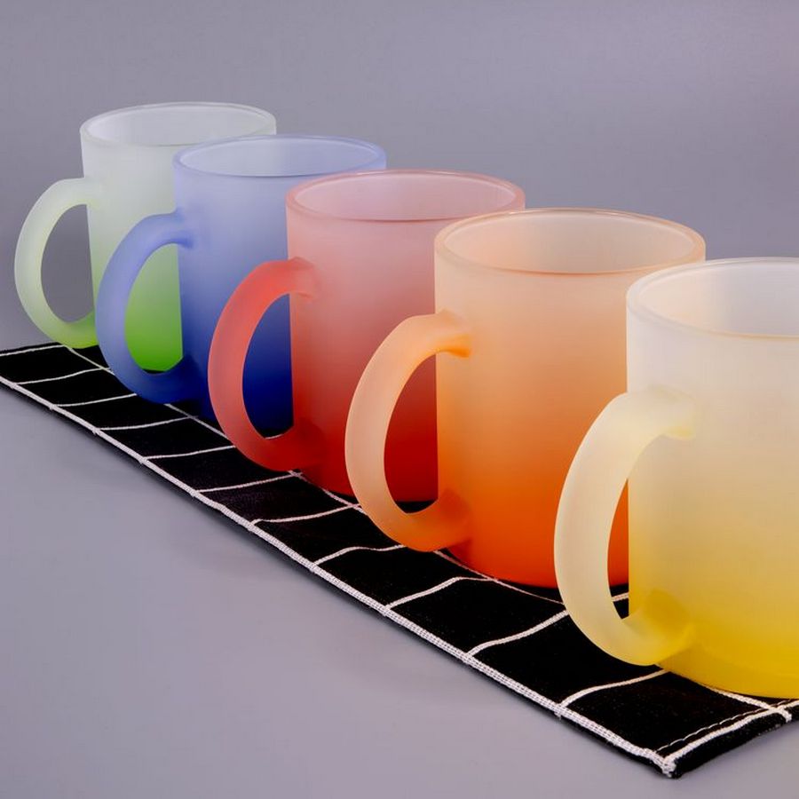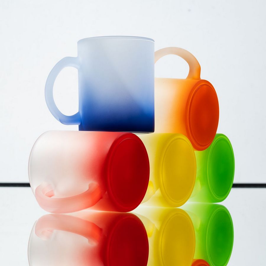 Яркая стеклянная кружка Grade Fade с эффектом омбре и плавным переходом цвета привлекает внимание оригинальным дизайном, а матовая поверхность приятна на ощупь. Подходит для сублимационной печати.