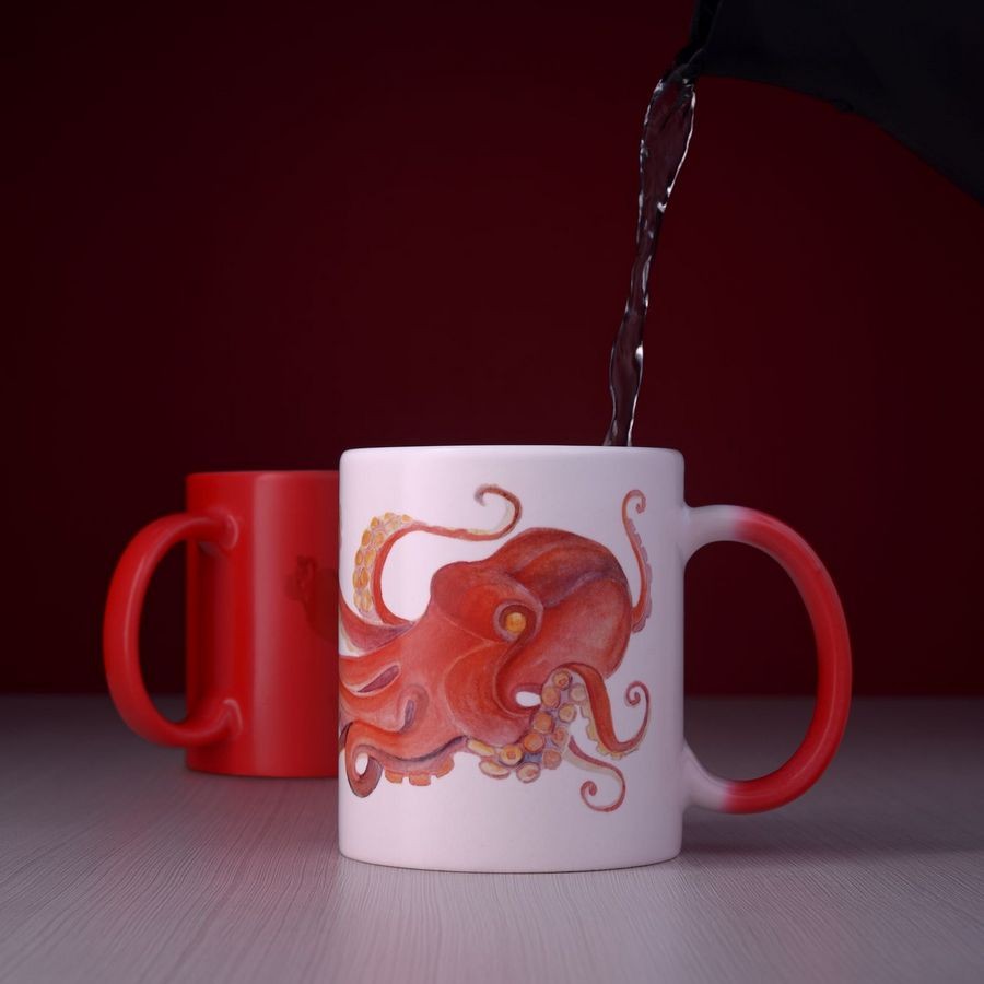 Кружка «Хамелеон» обладает интересным эффектом: стоит налить горячую воду, и ее цвет поменяется на белый.