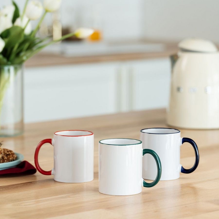 Кружка Rimo для сублимационной печати с цветным ободком и ручкой.